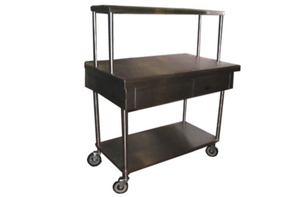 MOD. HLI-120-R Mca. Inomex Fabricada la cubierta en lámina de acero inoxidable Cal. 18 con cubierta del mismo material, entrepaños de acero inoxidable, cal. 20. Monta sobre estructura tubular de acero inoxidable de 1½ con ruedas de 4 Dim. 1.30X0.70X0.90+0.40 Nos adaptamos a sus necesidades